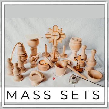 "My kids used to use goldfish, towels and other things around the house to āplay Massā. This set takes their imaginative play to another level and educates them on what each piece is called and its purpose in the Mass. Thank you for making a set that will make an eternal difference on how our kids experience and love the Mass!"