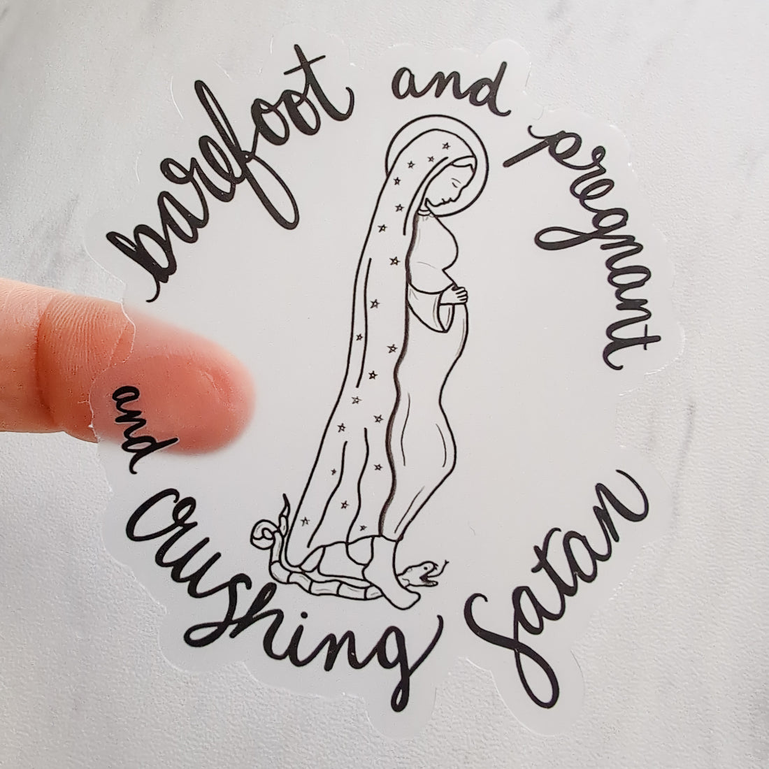 Barefoot & Pregnant Clear Sticker Some images speak quietly. Others speak with strength. This Barefoot...