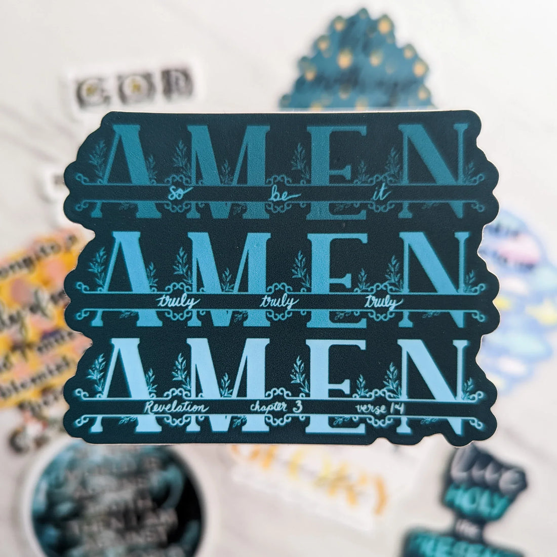 Introducing the "AMEN" waterproof vinyl sticker, inspired by Revelation 3:14. This sticker, which is 3''...