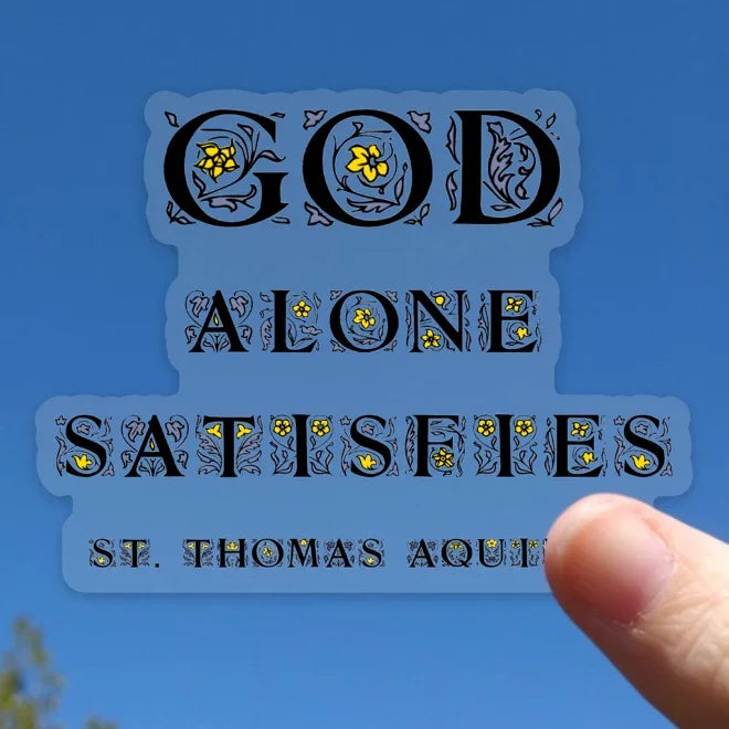 Introducing the "God Alone Satisfies" waterproof vinyl sticker, inspired by the writings of Saint Thomas Aquinas. This...