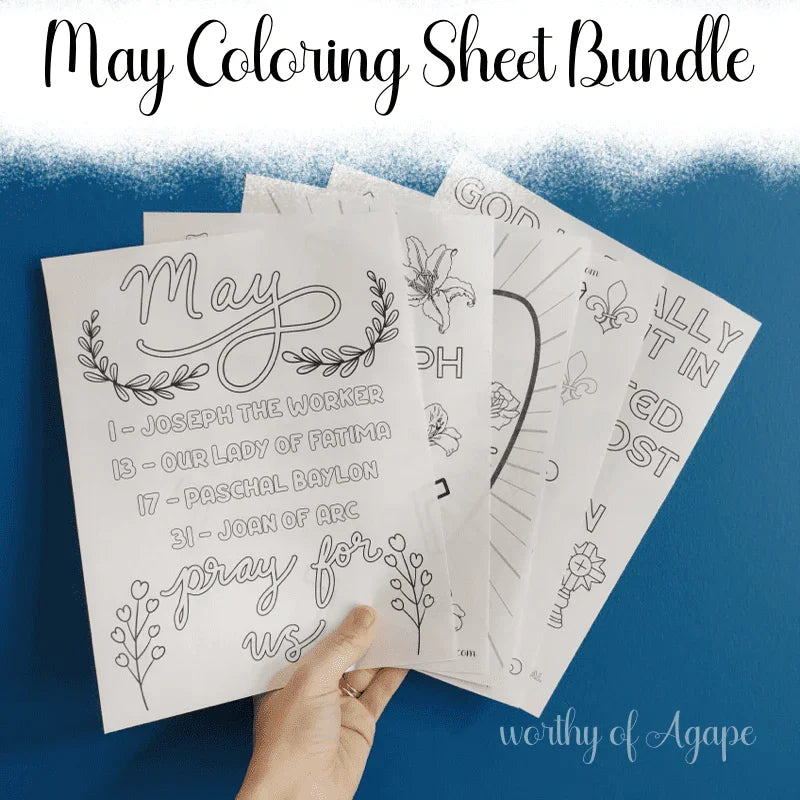 Introducing the May Coloring Sheet Bundle! This bundle includes five coloring sheets of popular feast...