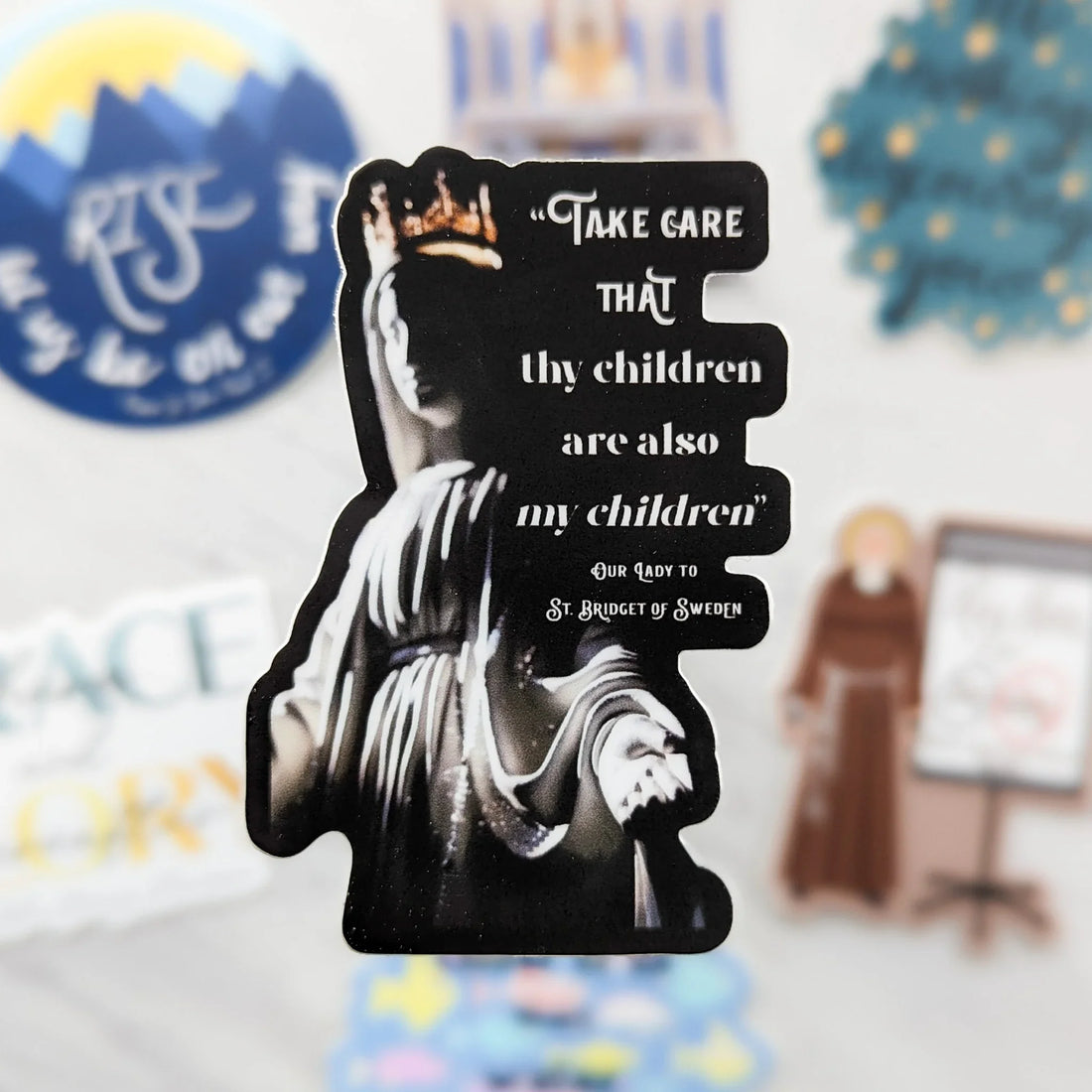 Introducing the "My Children, Too" waterproof vinyl sticker, which is a quote that Saint Bridget...