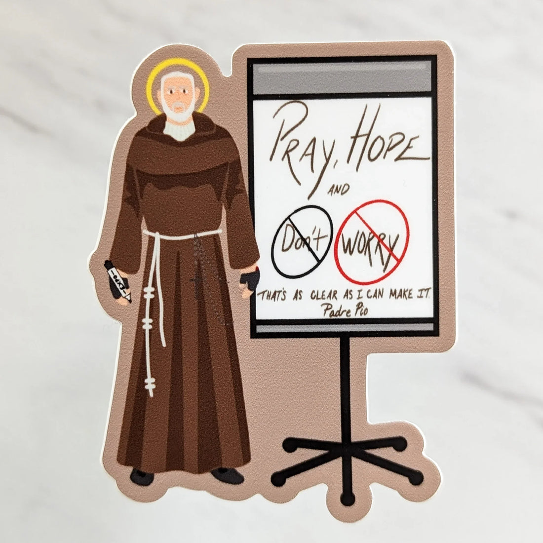 Pray, Hope, and Don't Worry (Saint Padre Pio) Sticker