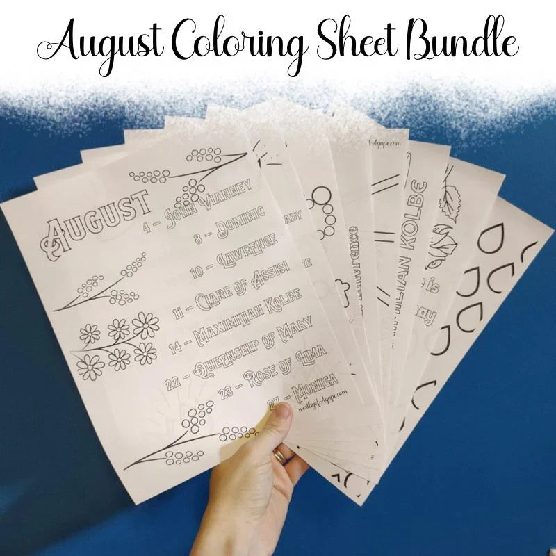 Introducing the August Coloring Sheet Bundle! This bundle includes eight activity sheets of popular feast...