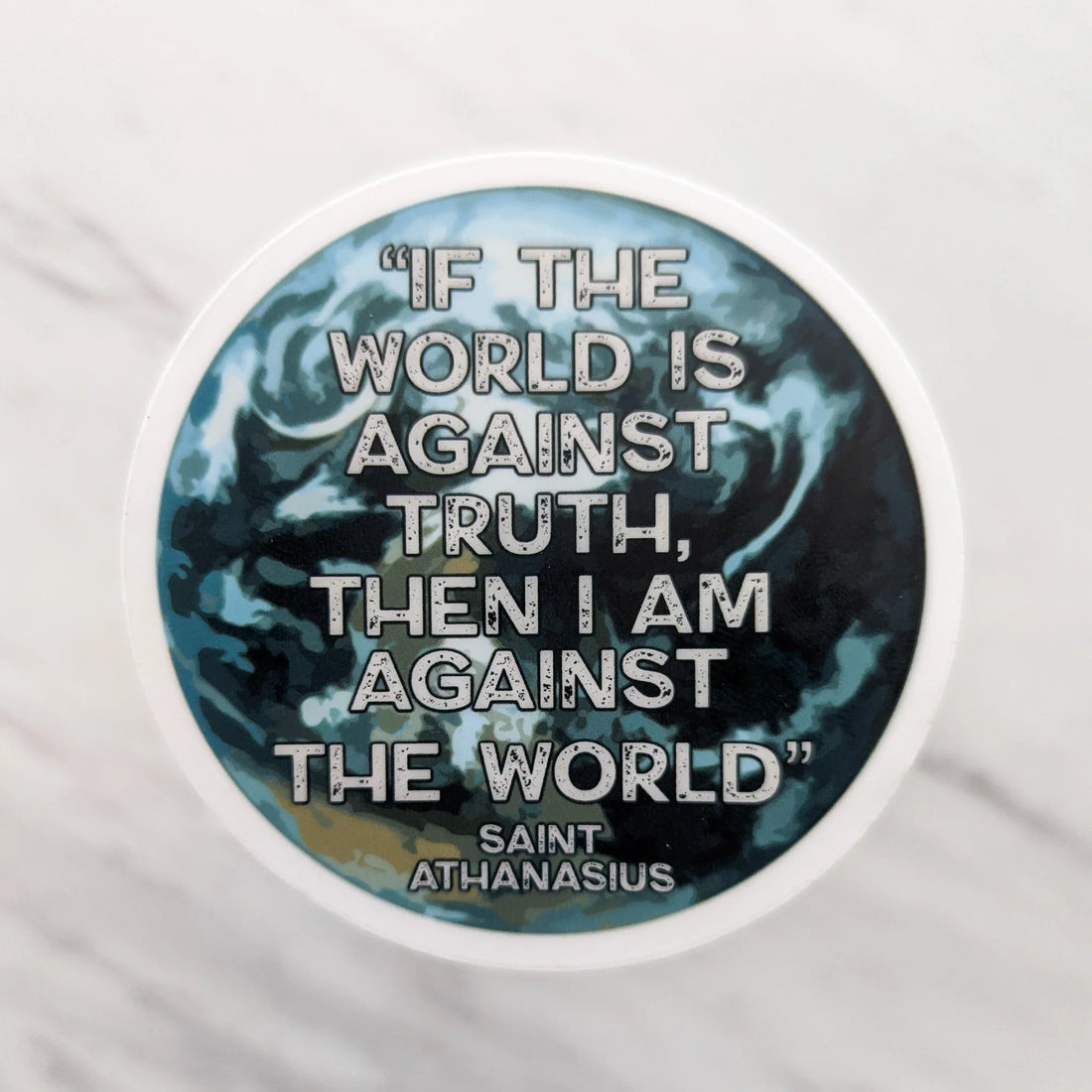 Introducing the "Against the World" waterproof vinyl sticker, inspired by Saint Athanasius. This teal green...