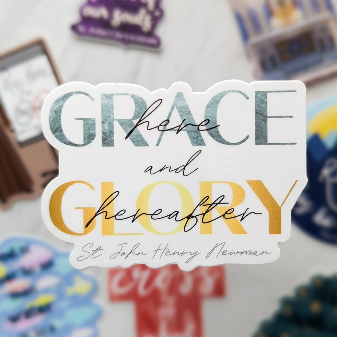 Introducing the "Grace and Glory" waterproof vinyl sticker, which is a brief quote from Saint...