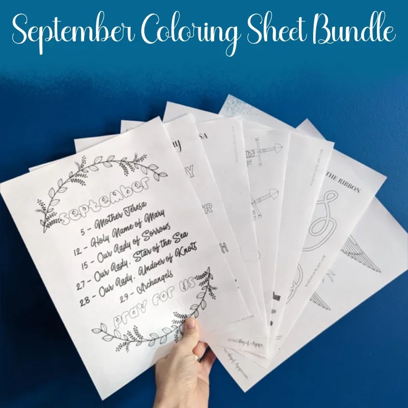 Introducing the September Coloring Sheet Bundle! This bundle includes seven pages of popular feast days...