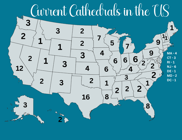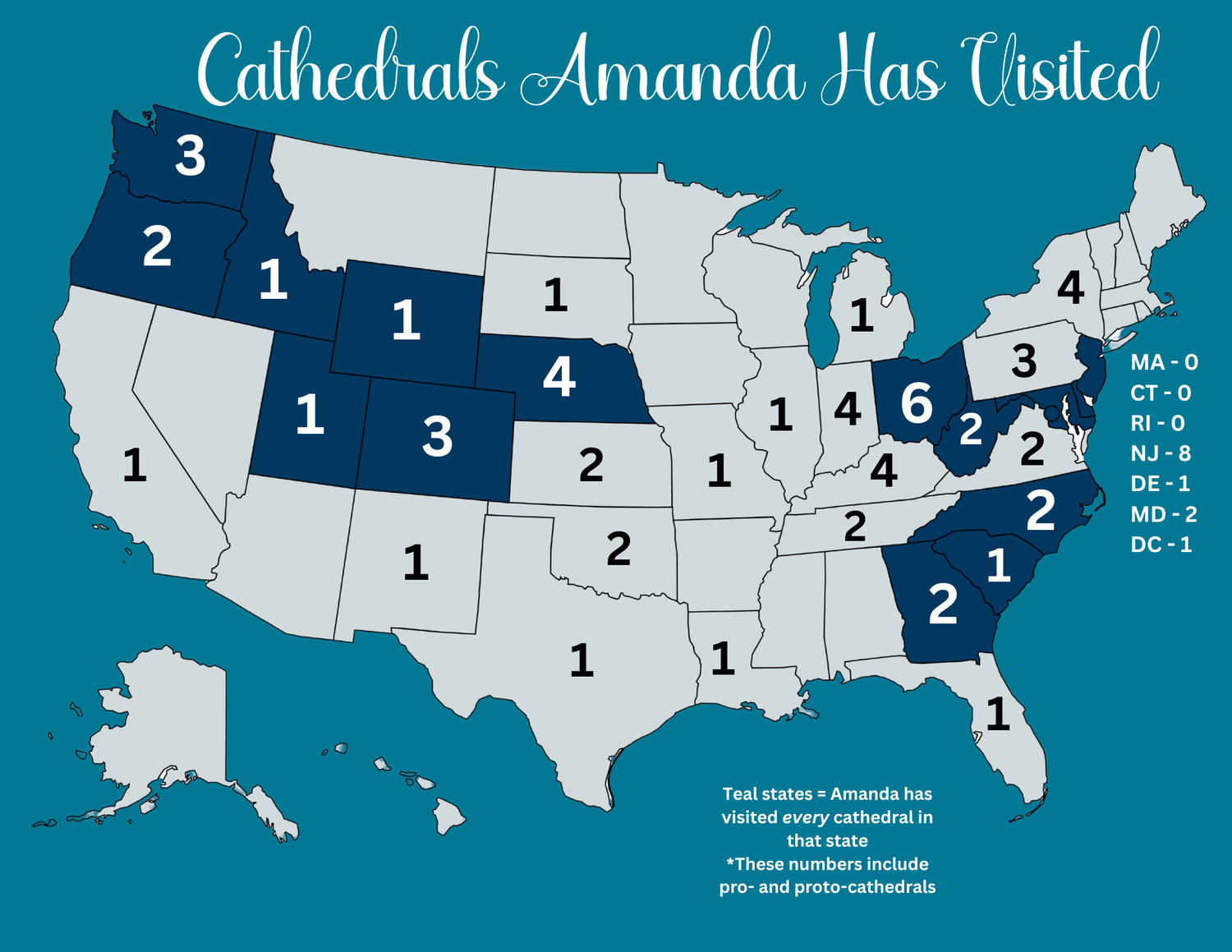 Cathedrals by state - but only the ones that Amanda has visited so far!
