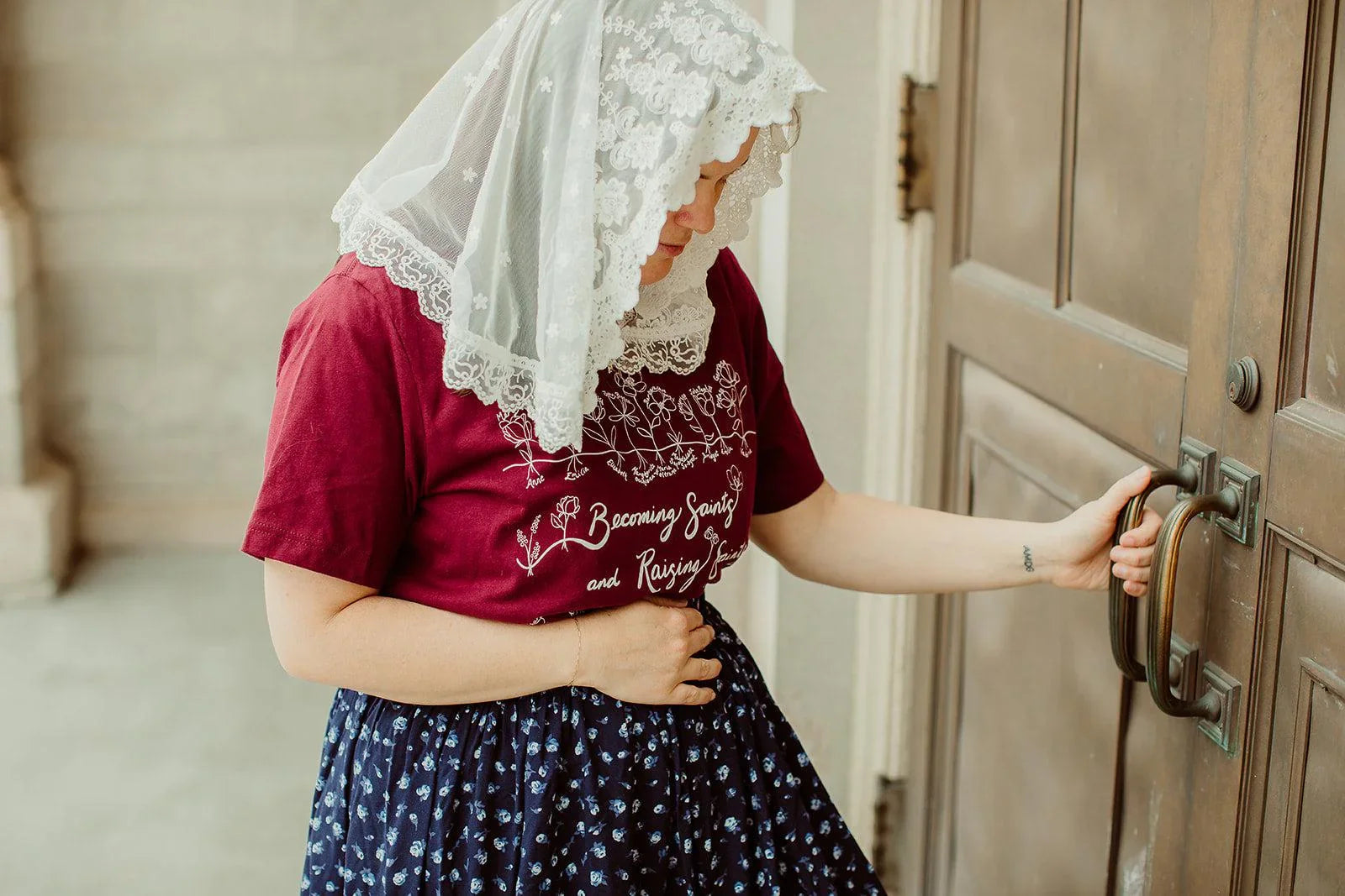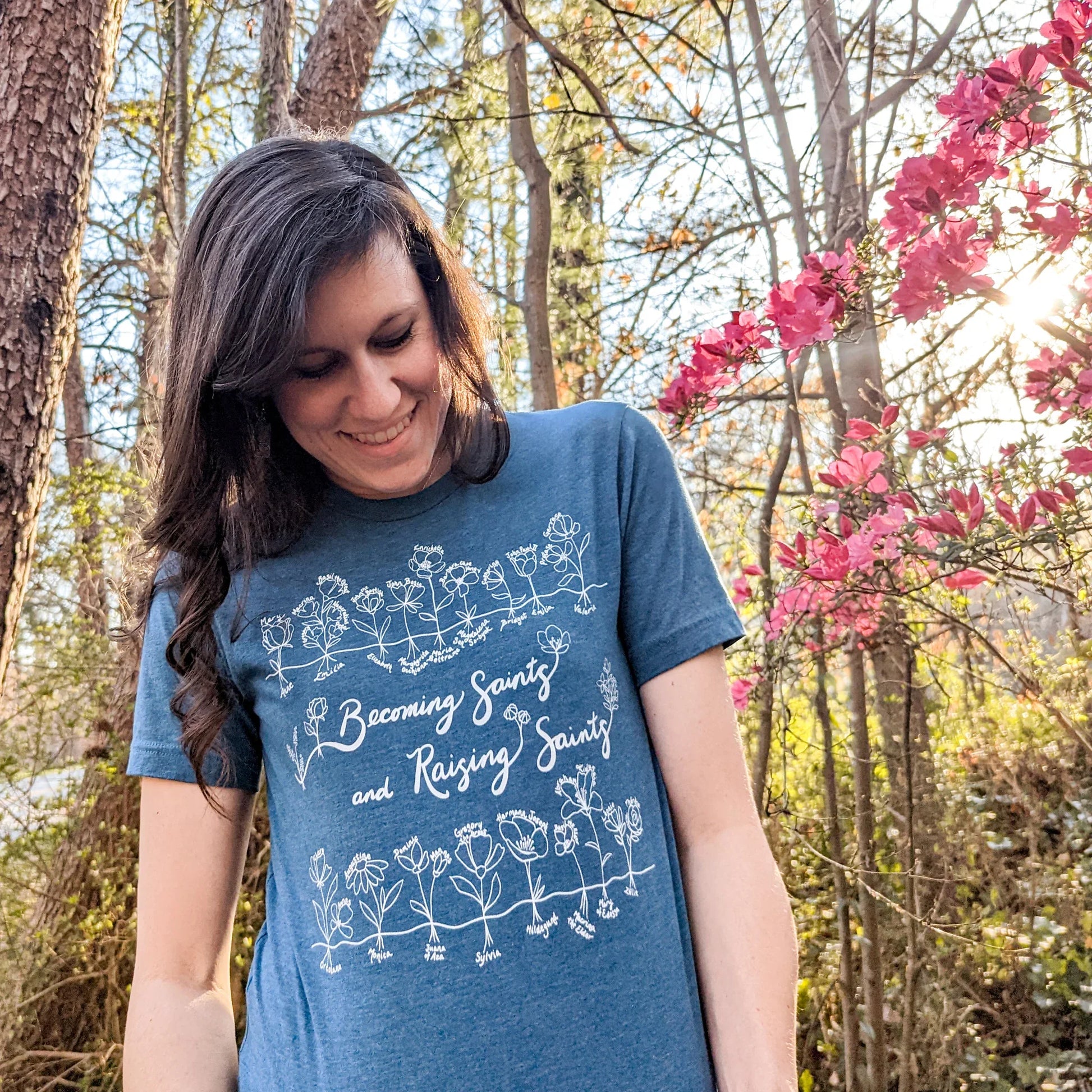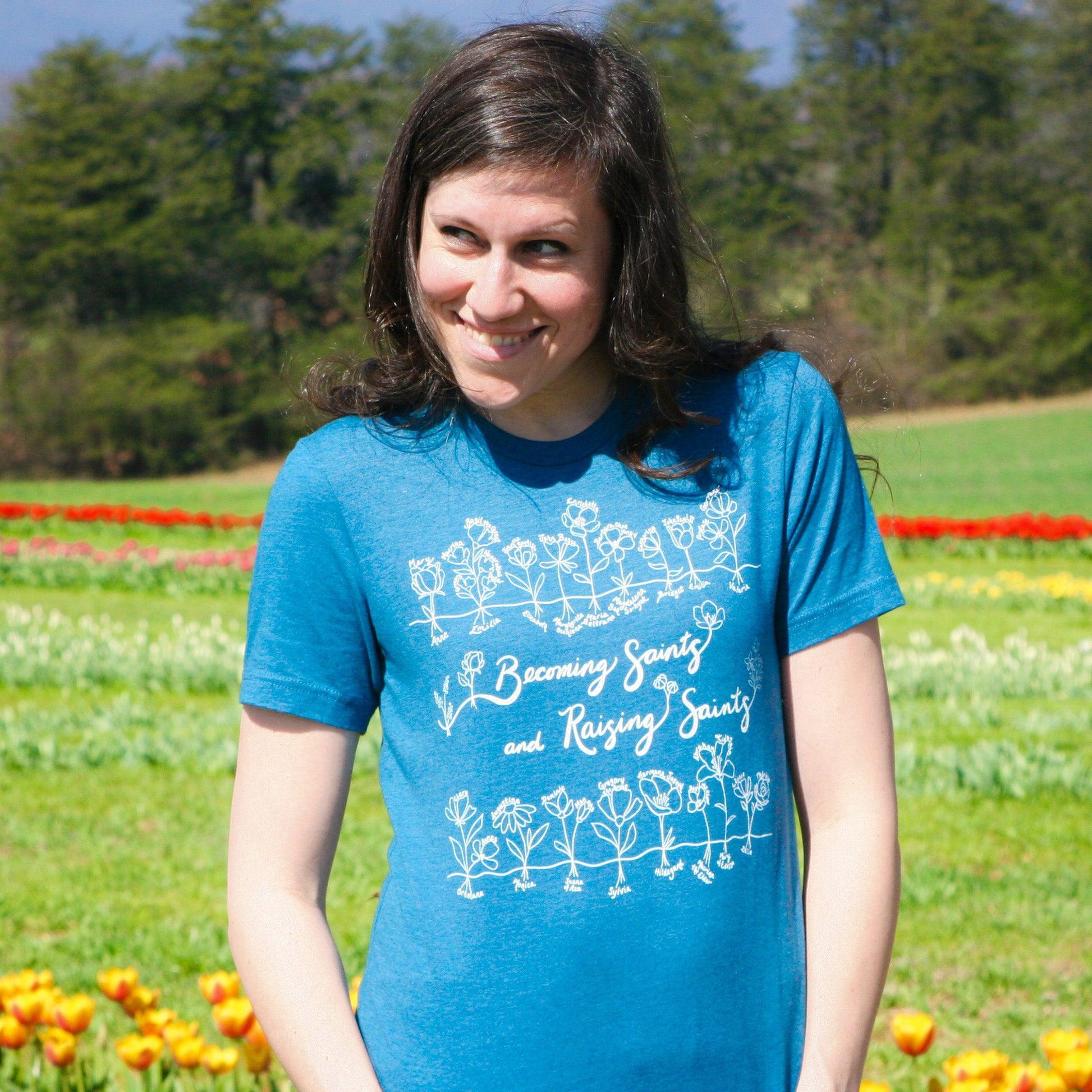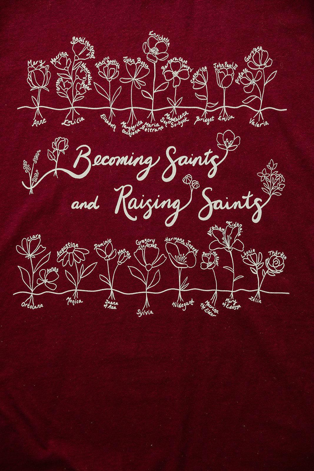 The Becoming Saints and Raising Saints tee honors that truth. It's a tribute to the women who show us how.