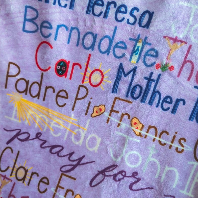 Alternatively, you can order a blanket for a single child or loved one. Perhaps a godchild or a grandchild, with a blanket featuring their saintly namesakes - the options are virtually endless! (Of course, only individuals with a cause for canonization will be included!)