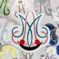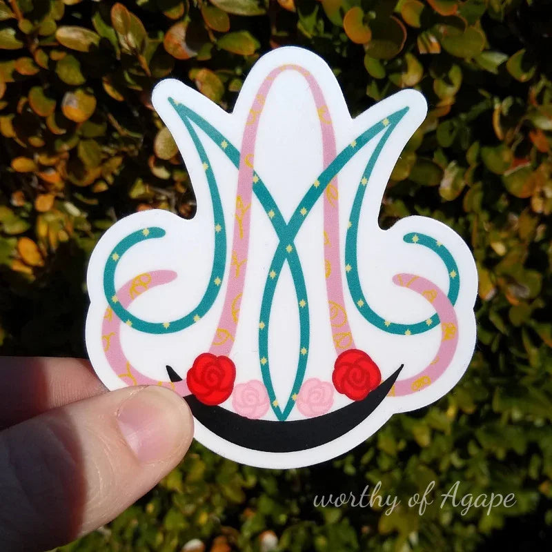 For this design, the focus is on Mary’s beloved title, Our Lady of Guadalupe. At the base of the symbol rests the dark moon, just as she appeared on Saint Juan Diego's tilma. Roses spill forth above the moon, recalling the miraculous sign revealed on his tilma. Within the A of the symbol is the floral pattern of her inner garment. The M highlights her mantle, star-filled and glowing with the heavenly light of the apparition. Every detail in the Our Lady of Guadalupe sticker reflects her image and story.
