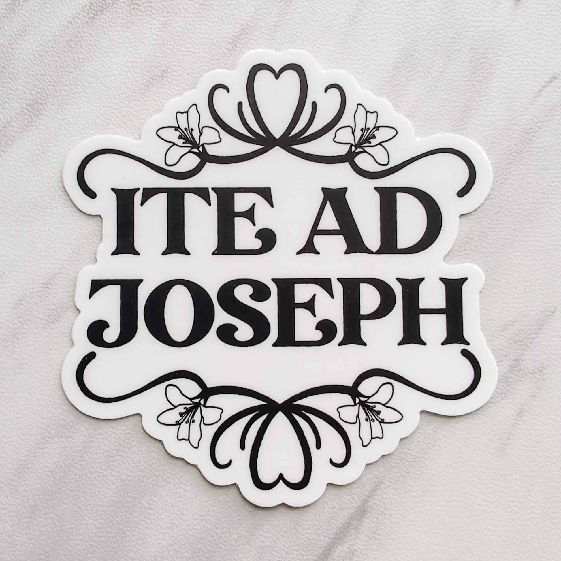 If your family is seeking guidance, peace, or provision, this Ite Ad Joseph sticker was made for you. Add one to your cart and let Saint Joseph meet you where you are.