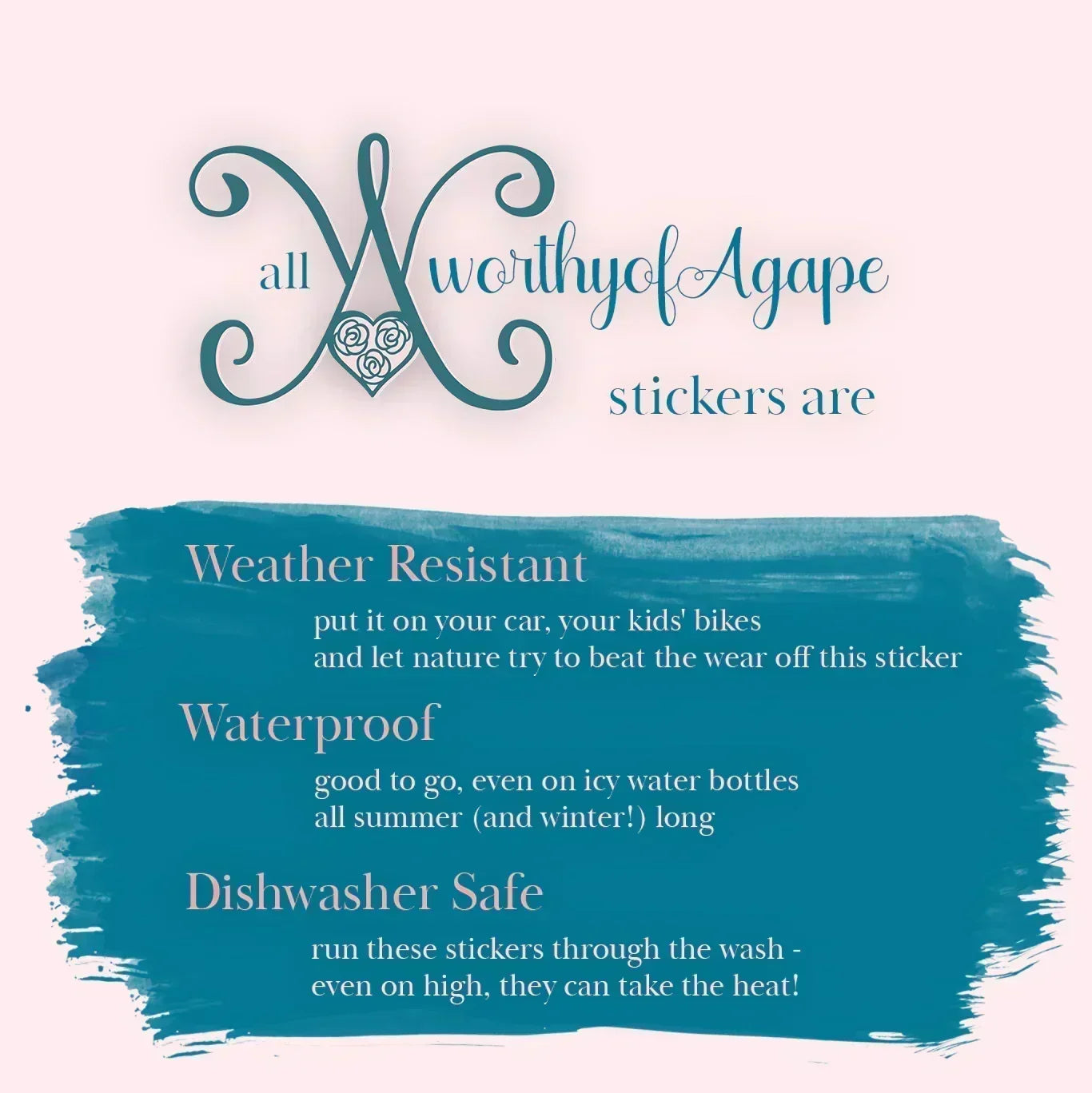 Fret not, these stickers are the same high-quality, vinyl, waterproof stickers you have come to know and love from worthy of Agape.