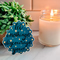 The striking deep teal background of the sticker pays homage to Our Lady's iconic mantle, evoking a sense of serenity and reverence. Adorned with numerous eight-point stars, reminiscent of those found on Our Lady's garment, this sticker embodies the celestial beauty and heavenly connection associated with her divine presence.