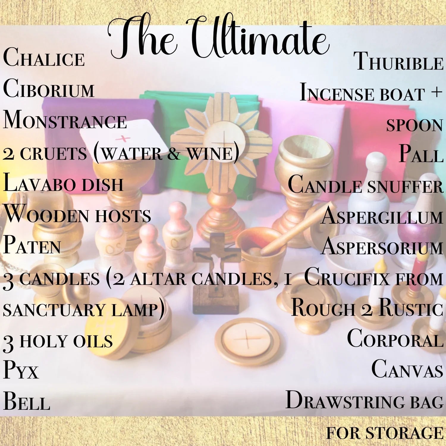 Additionally, the Natural Wood Ultimate Set also includes an info sheet on each of the items with a bit of history and teaching. This set makes a great gift for little ones learning about the liturgy!