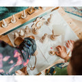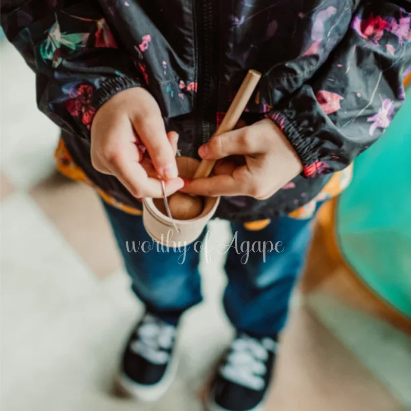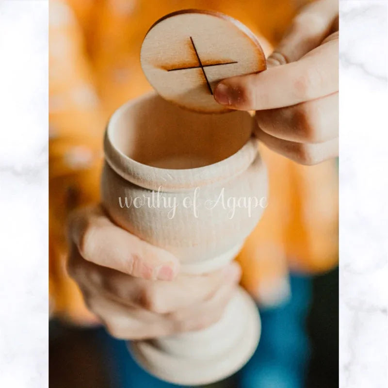 For years I watched my kids turn plastic cups and cheerios into chalices and hosts. I searched high and low before creating their very own wooden Mass set. When I saw their faces light up and begin processing around our apartment playing adoration, I knew I wanted to share these sets with families like yours. I can’t wait to bless your family with a set for prayer and play.