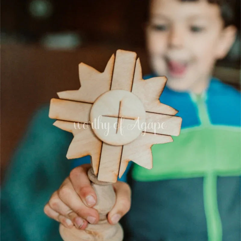 Wooden parts are durable, and they also provide an opportunity for children to learn and pray wherever they are. These handcrafted and hand painted items allow children to connect with the liturgy in a new way.
