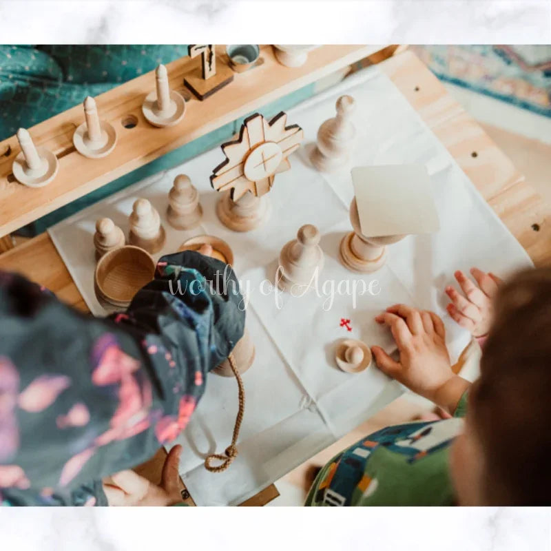 How can you help your kids actually enjoy the liturgy? By uniting prayer and play, with your own wooden Mass set!
