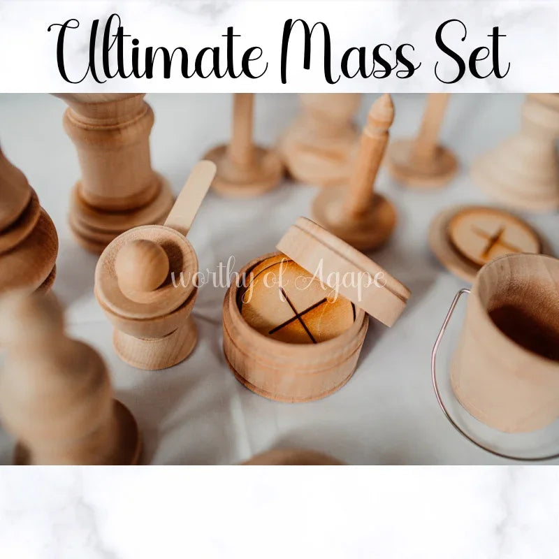 Additionally, in times where families cannot attend the celebration of the liturgy, Mass sets allow children to remain close to the Blessed Sacrament in a prayerful, playful way. In addition, we also offer the Natural Wood Deluxe and Natural Wood Traditional Latin Sets!