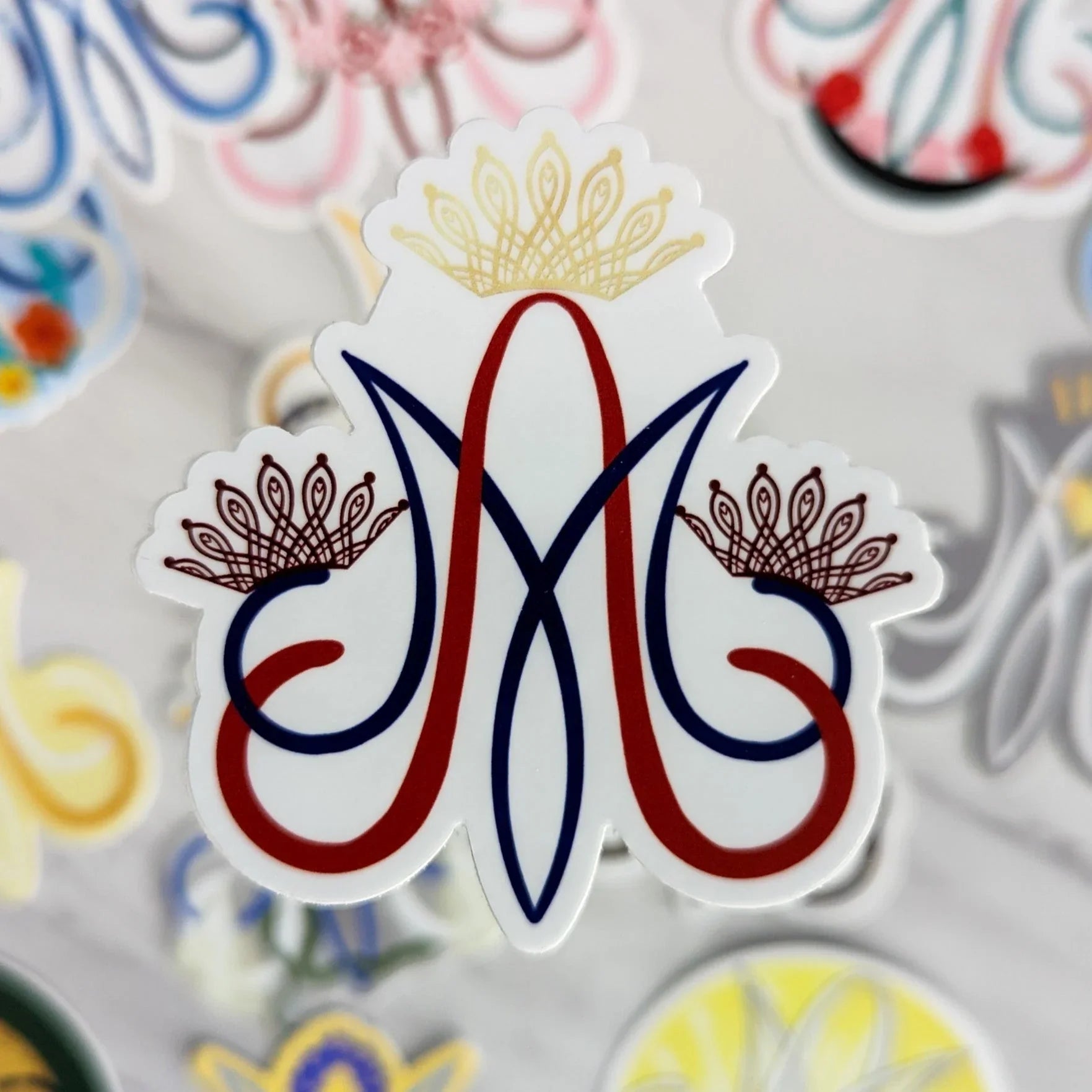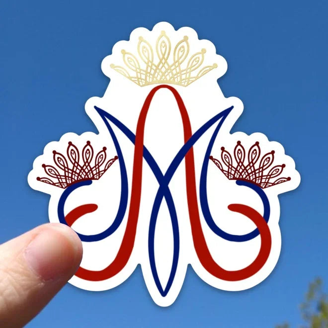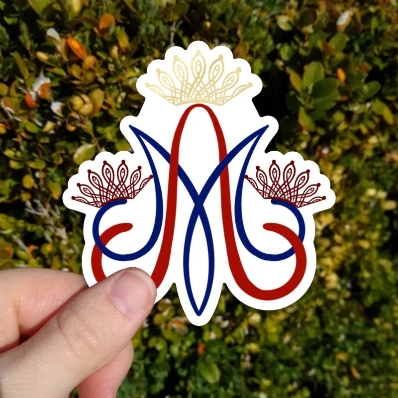 Introducing the "Queen of Martyrs" Auspice Maria waterproof sticker, a powerful addition to our series inspired by the numerous titles of Our Lady. Crafted with meticulous attention to detail, this sticker pays homage to Our Lady's role as the Queen of Martyrs.