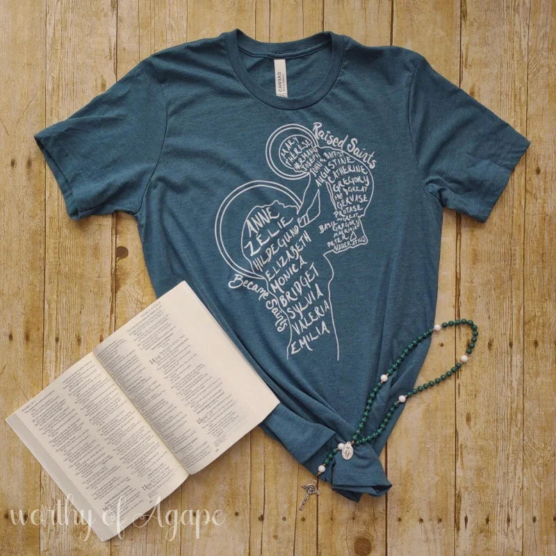 Introducing the Raised Saints, Became Saints tee - one of our best sellers! Whether you grab this tee for yourself, for your mom, or every mother in your life, this tee is sure to be a winner! The saintly women on this shirt are truly women to emulate. Not only did they raise saints, but they became saints themselves.
