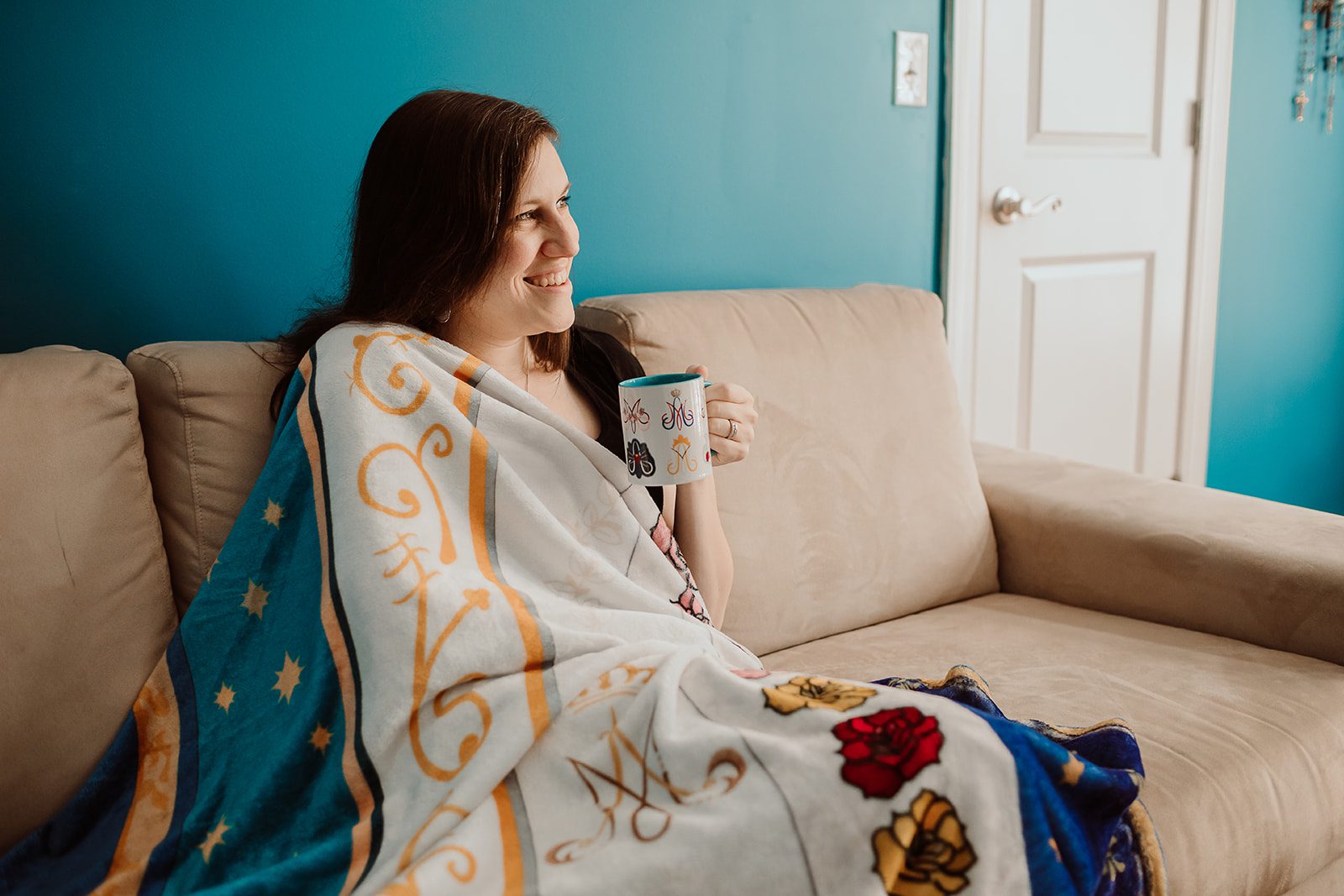 "My GORGEOUS blanket arrived today, and having read Amanda’s email I knew I was supposed to wash it right away. Laundry is probably my least favorite chore, but I wanted to use my new blanket so badly I made myself do a load of laundry. Now I’m happily snuggled under it!"