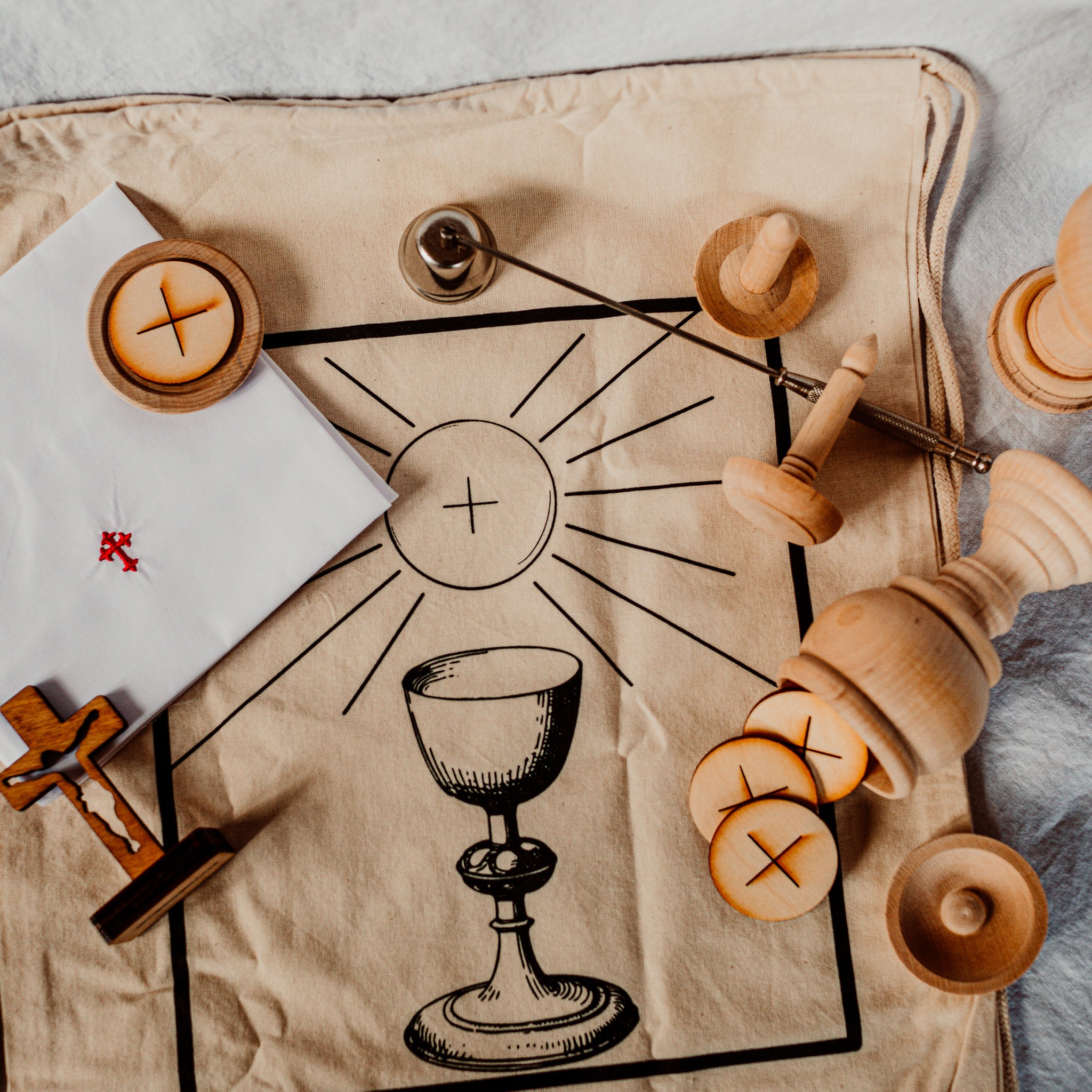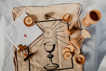 "My kids used to use goldfish, towels and other things around the house to “play Mass”. This set takes their imaginative play to another level and educates them on what each piece is called and its purpose in the Mass. Thank you for making a set that will make an eternal difference on how our kids experience and love the Mass!"